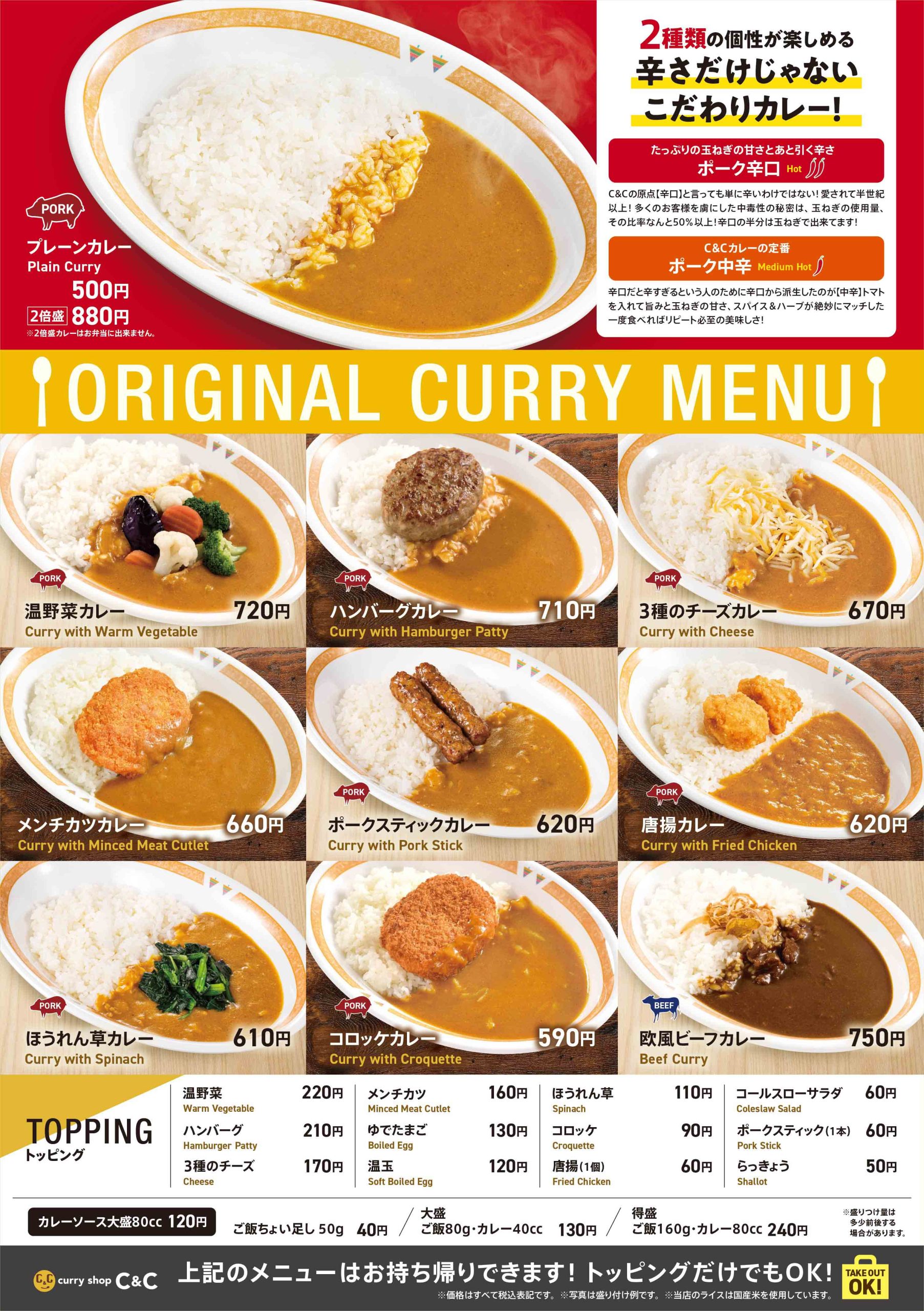 プレーンカレー+10円(税込み) トッピング+10~20円(税込み)一部据え置きあり